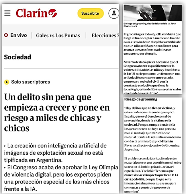 Conversamos con Clarín acerca de como las redes de pedofilia utilizan la IA para generar imágenes de abusos sexuales de niñas, niños y adolescentes