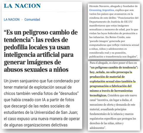 Conversamos en LA NACION acerca de como las redes de pedofilia ya utilizan la Inteligencia Artificial para generar imágenes de abusos sexuales de niños, niñas y adolescentes.
