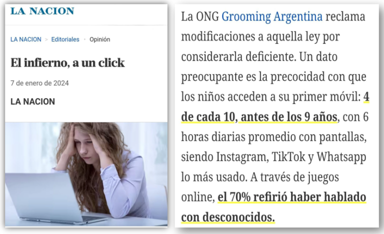 Dialogamos con LA NACION acerca del estado de situación del delito de Grooming en el país, en referencia al reciente estudio que relevamos donde se desprenden los siguientes datos: