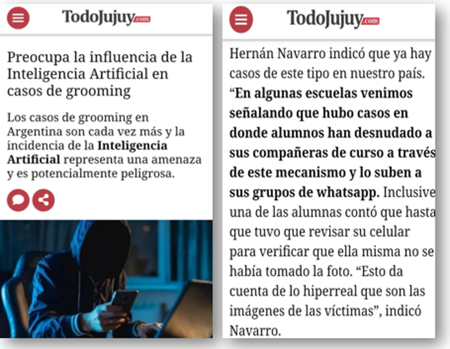 Conversamos con TodoJujuy sobre el exponencial aumento de casos de Grooming en Argentina y la nueva influencia de la Inteligencia Artifical en la comisión del delito.