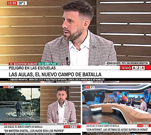 El Dr. Hernán Navarro dialogó con Eduardo Battaglia y equipo en A24.com, en el marco de los episodios de violencia protagonizados por adolescentes en instituciones educativas de todo el país y sobre la distancia en materia digital entre el mundo adulto y las adolescencias.