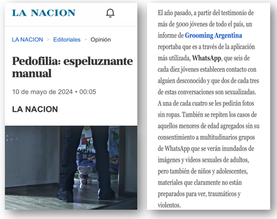 La nota completa: https://www.lanacion.com.ar/editoriales/pedofilia-espeluznante-manual-nid10052024/?fbclid=IwY2xjawMfAj5leHRuA2FlbQIxMABicmlkETFGeEdWU2J3a3J5ZG0yZXE2AR6UDcMDQ84FnPDJMg2vz2ak1tNV7GYMY7QFXI1CzIEpfH4Xq-GnReCgJHqnHA_aem_7oCwc1yoPdCMDWcaI1_pzA