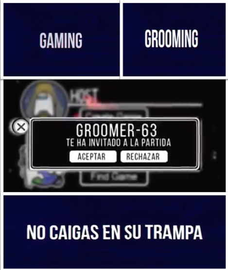 Un Groomer puede ejecutar el delito de Grooming también mediante Juegos Online, utilizando un perfil real o falso. Rechazá toda solicitud de perfiles que no conozcas personalmente y no sean de tu confianza.