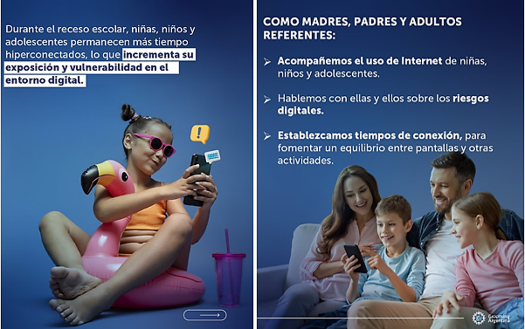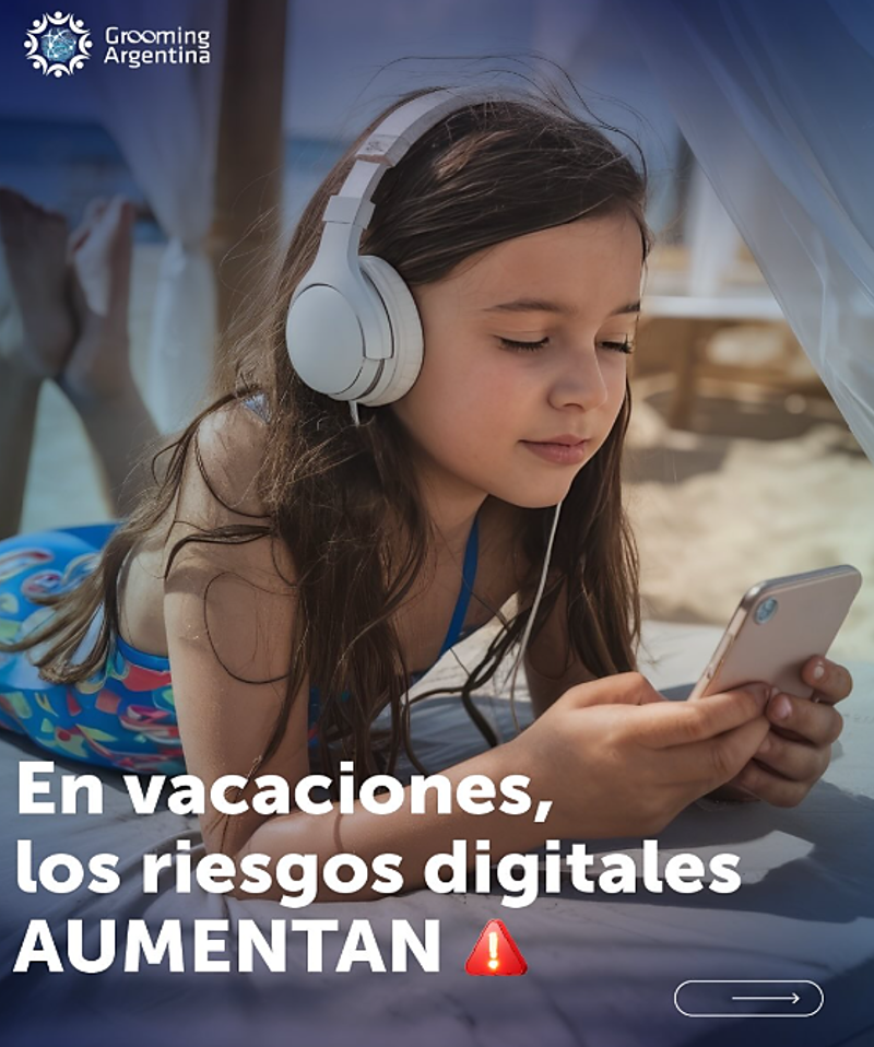 Durante las vacaciones, niñas, niños y adolescentes utilizan más tiempo las plataformas digitales. Esto aumenta el riesgo de Grooming, Ciberacoso y diferentes formas de vulneración de derechos.