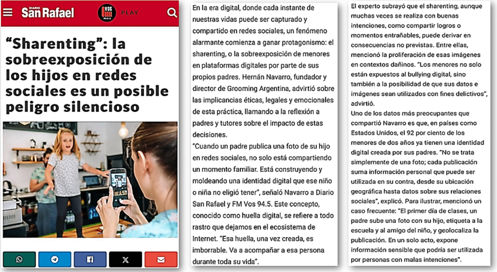Leé la nota completa:https://diariosanrafael.com.ar/sharenting-la-sobreexposicion-de-los-hijos-en-redes-sociales-es-un-posible-peligro-silencioso/?.