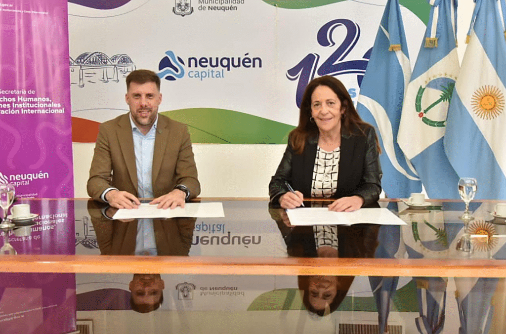 Con la Secretaria de DD.HH, Relaciones Institucionales y Cooperación Internaiconal de la Municipalidad de Neuquén, Dra. Luciana de Giovanetti, firmamos un convenio para implementar el “Plan Provincial de Prevención de Violencias a Niñas, Niños y Adolescentes en el Entorno Digital”.