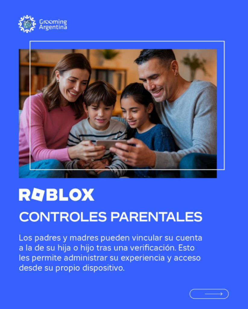 Ingresá a nuestro sitio web y descargá la guía que realizamos en conjunto: https://www.groomingarg.org/wp-content/uploads/2025/02/GUIA-ROBLOX–GROOMING-ARGENTINA.pdf.