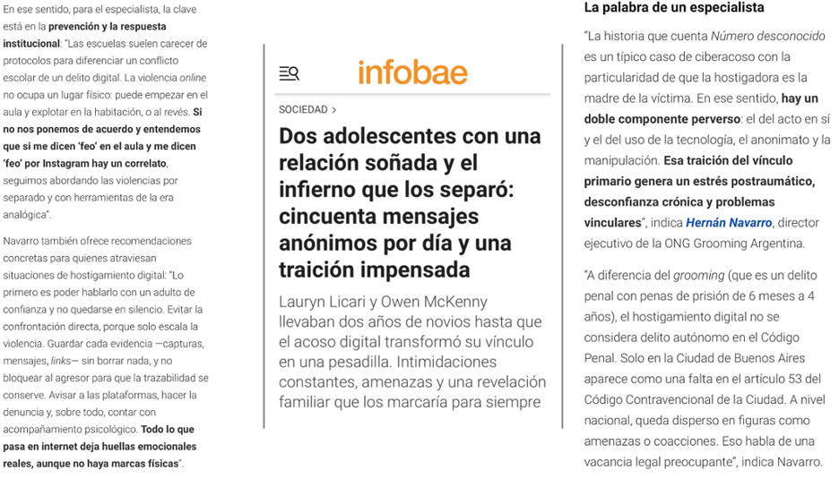 “Todo lo que pasa en internet deja huellas emocionales reales, aunque no haya marcas físicas”, expresó el Dr. Hernán Navarro al respecto.